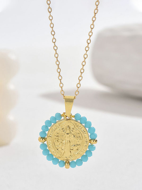 Beautiful beads surround metal jewelry with a special pattern, and wearing it will draw attention to your necklace. It will look great if you wear a shirt or skirt.