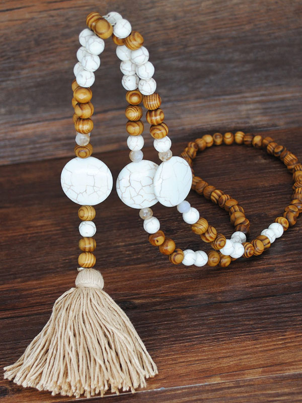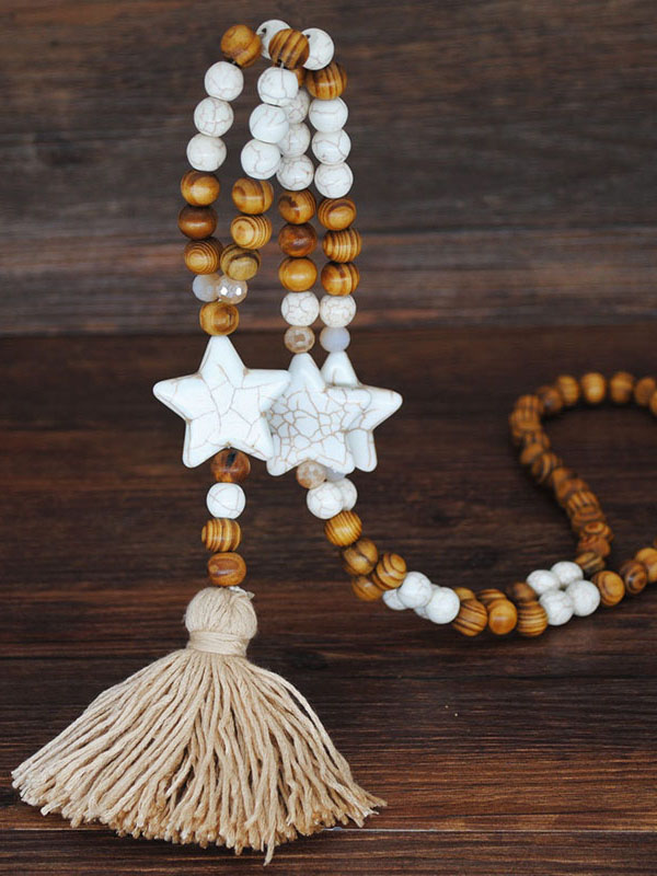 This beaded necklace with wooden beads adds a touch of handmade vintage chic to your look, perfect for bohemian fashion looks and can be worn with any casual top every day.