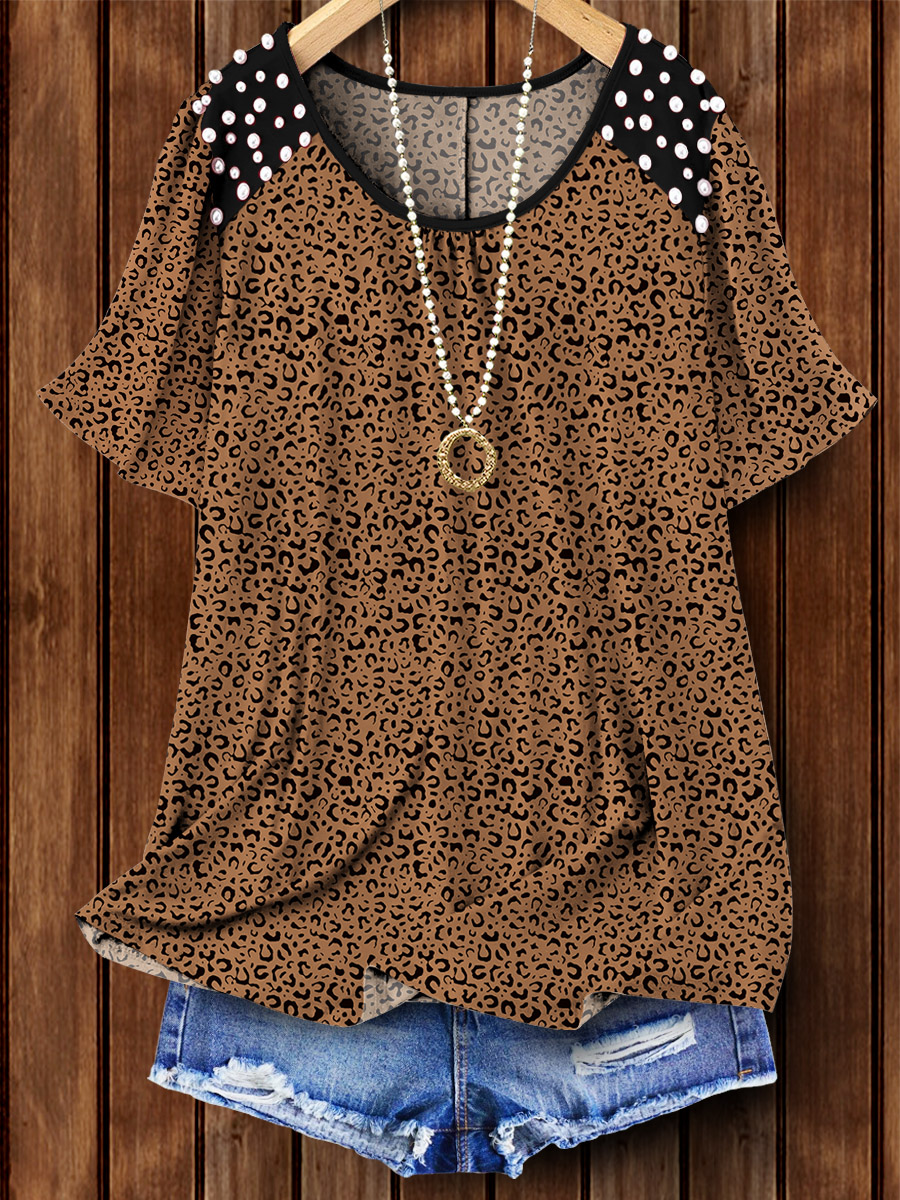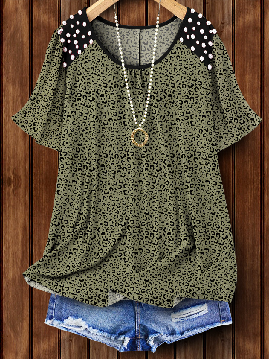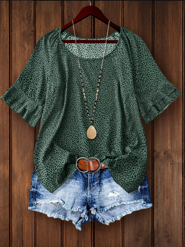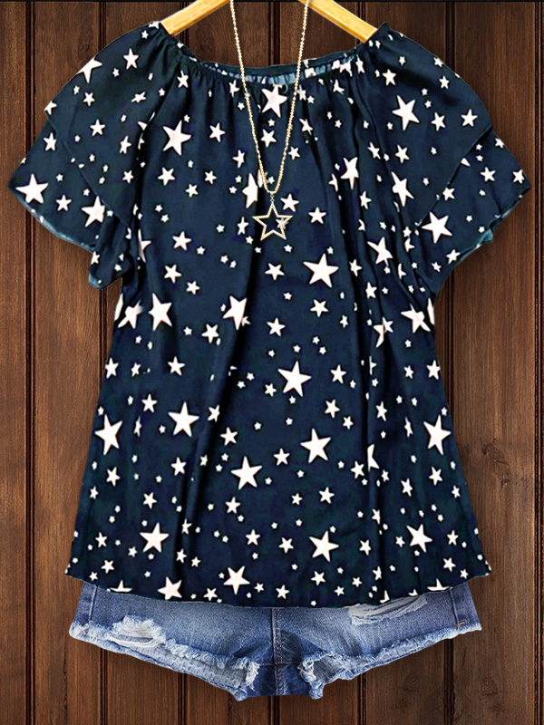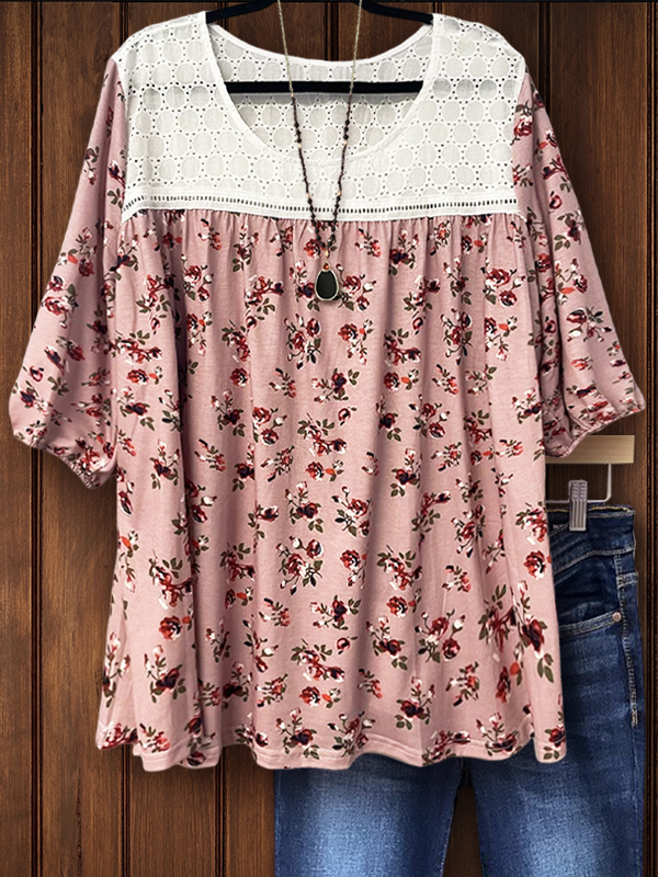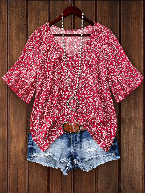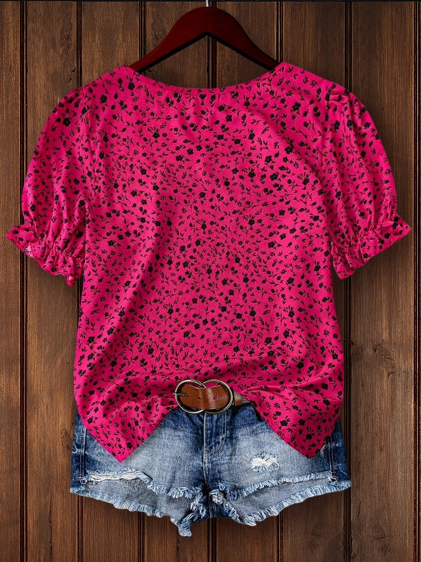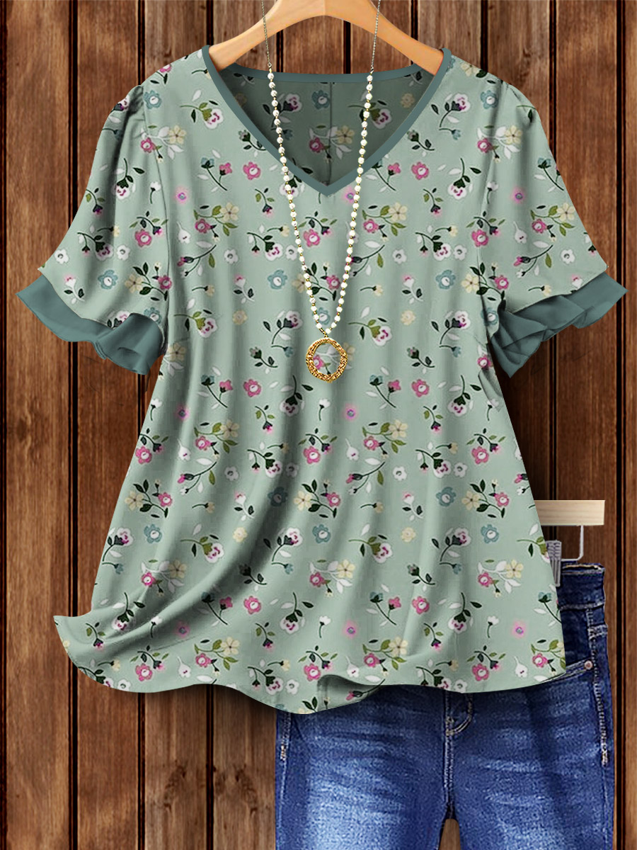 Loose Floral Printed Round Neck Cap Sleeve Blouse