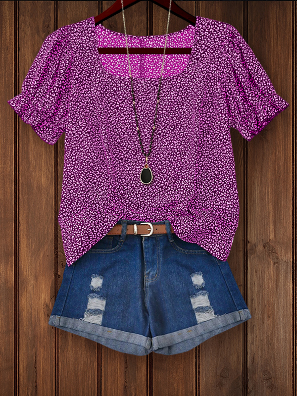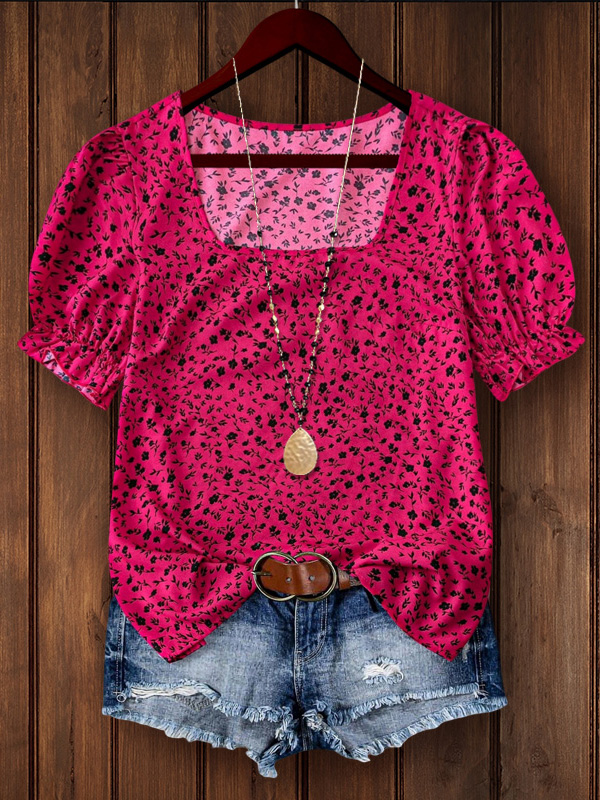 Square Collar Casual-Fit Allover Print Short Sleeve Shirt