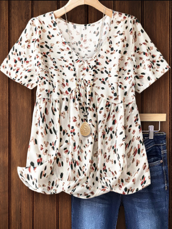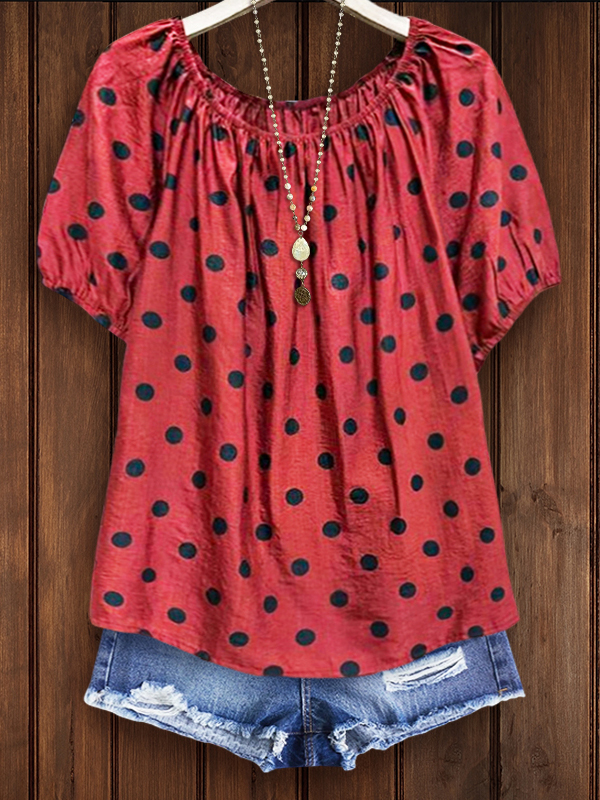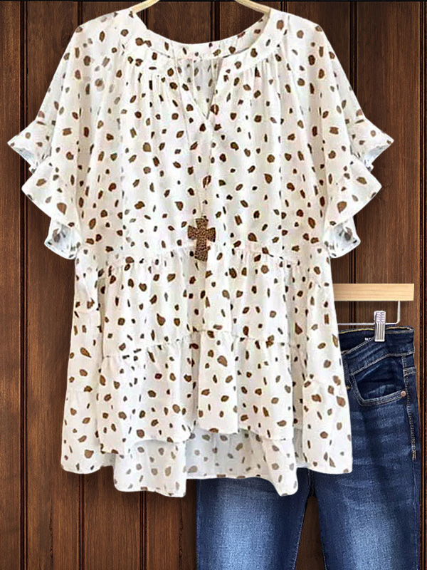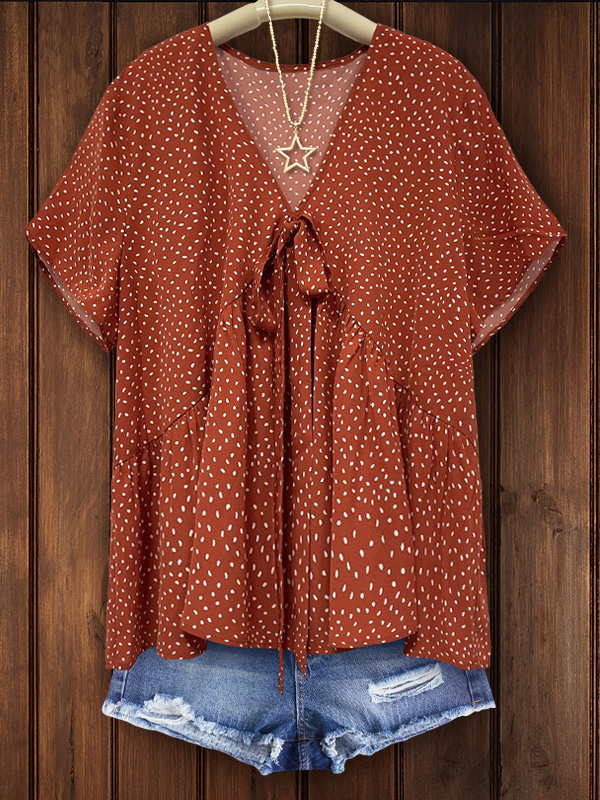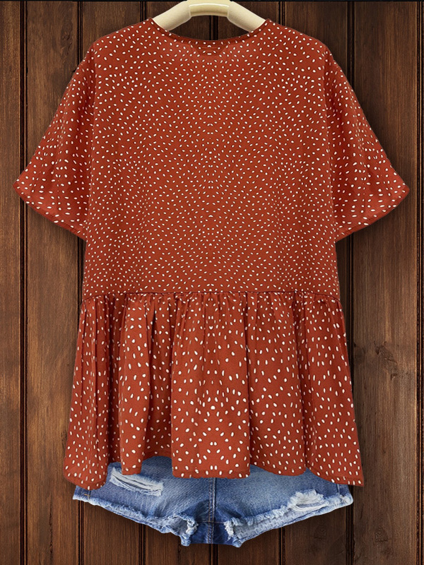 Casual Polka Dot Printed Ruffle Hem Blouse