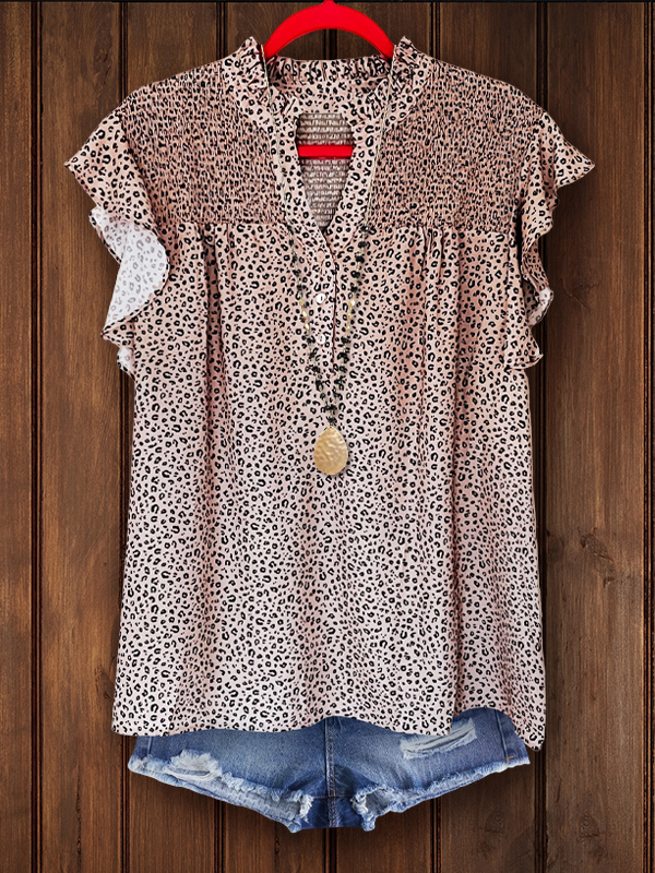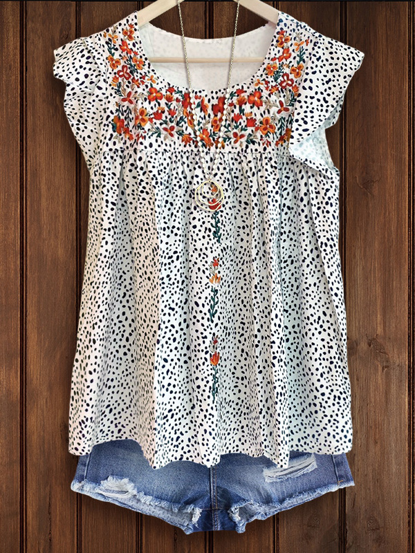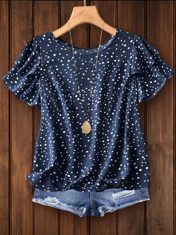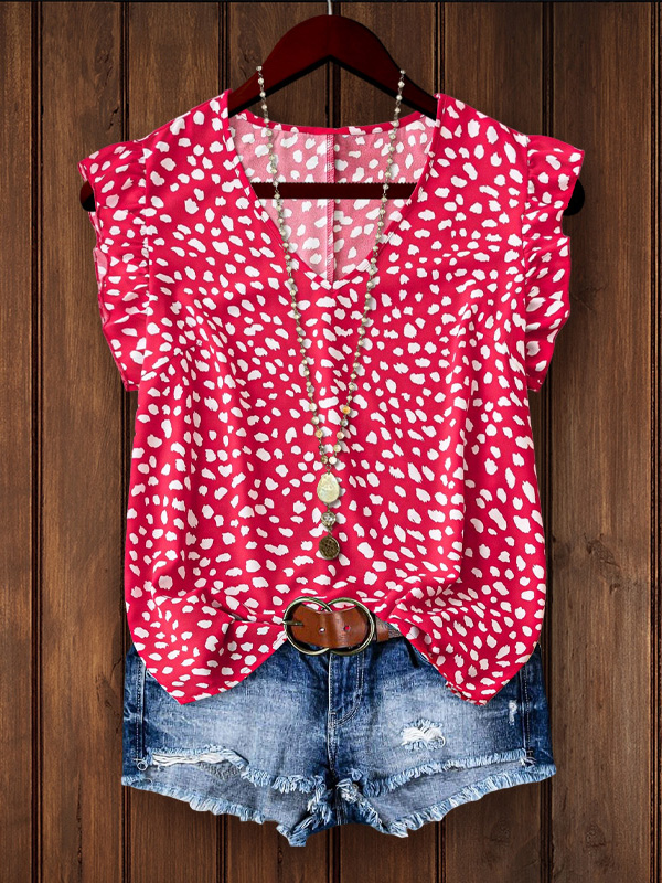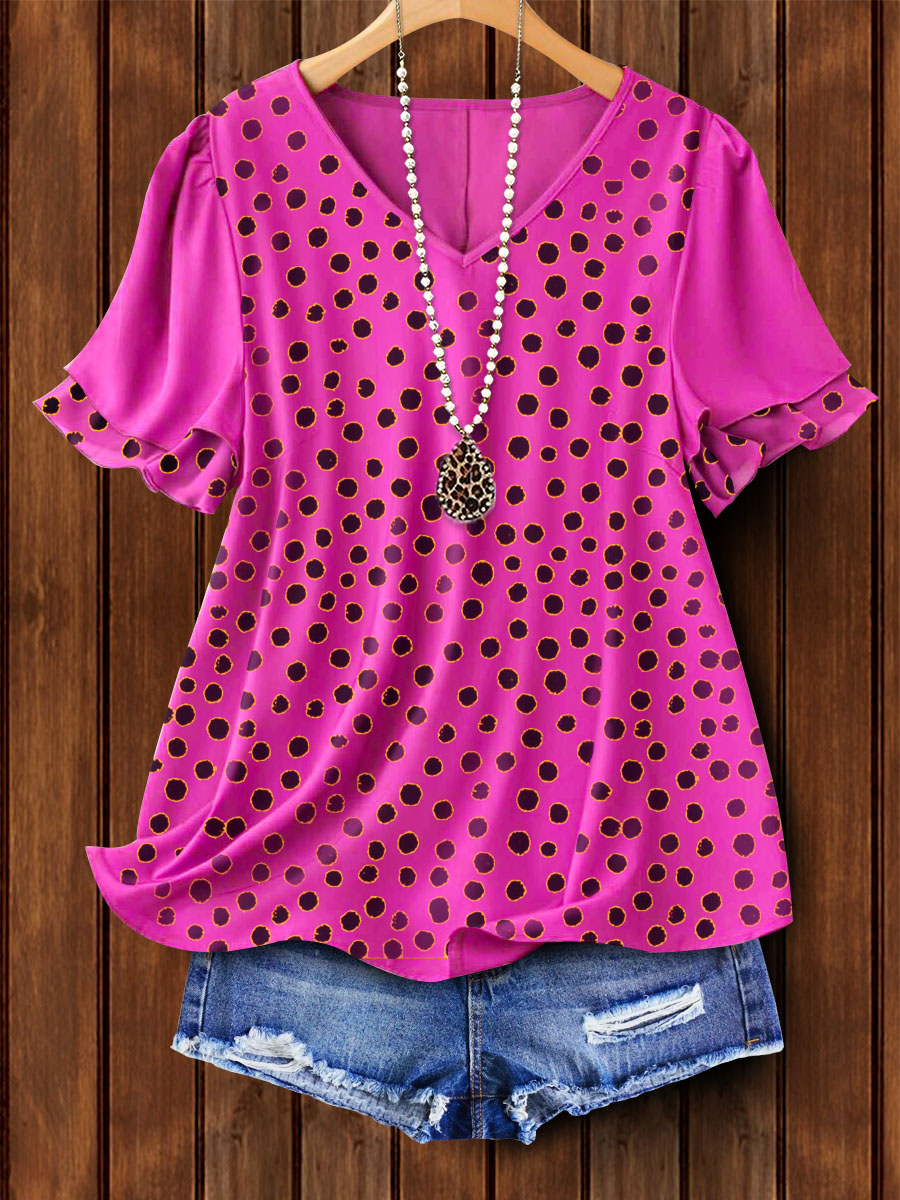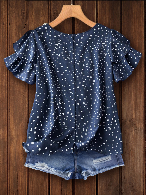 V-Neck Double-Layers Ruffle Sleeve Polka Dot Top
