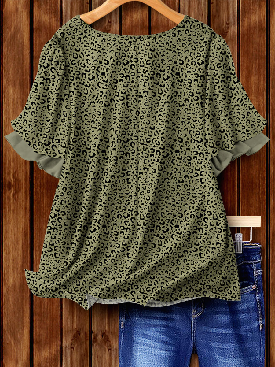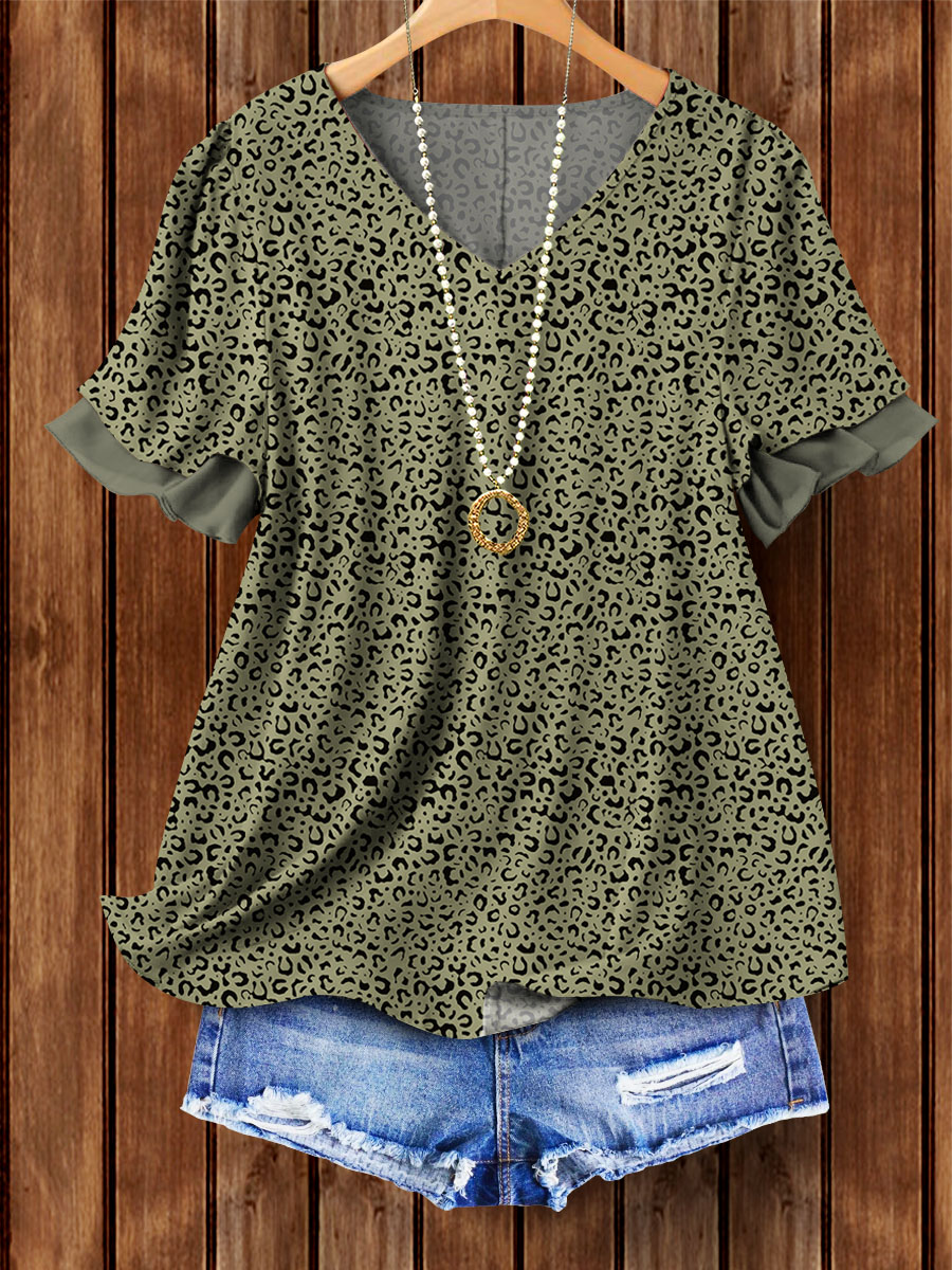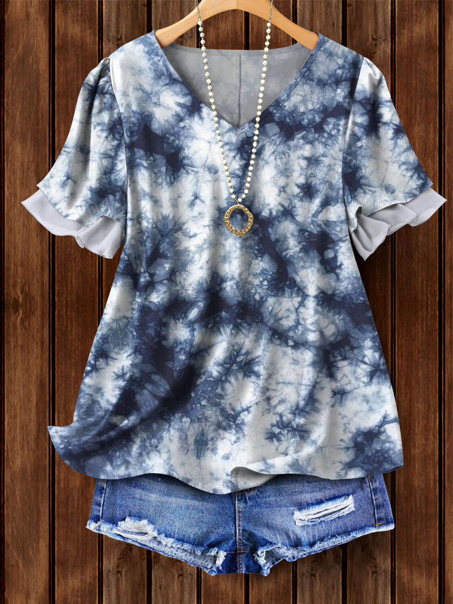 V-Neck Double-Layers Ruffle Sleeve Polka Dot Top