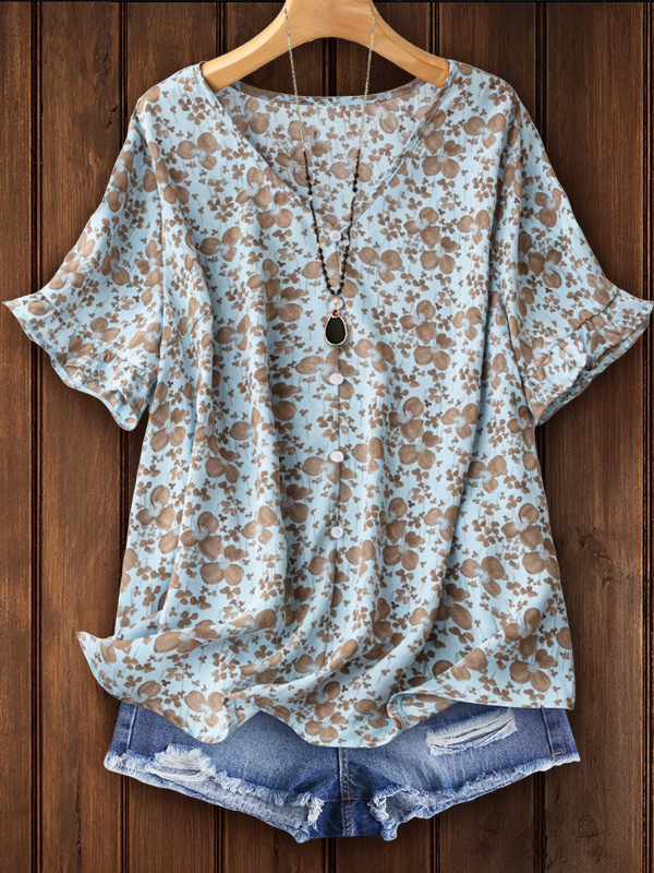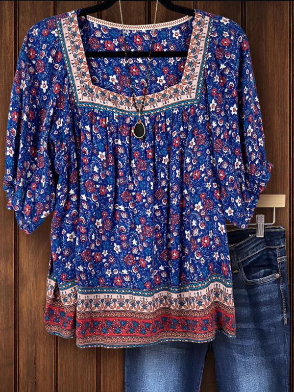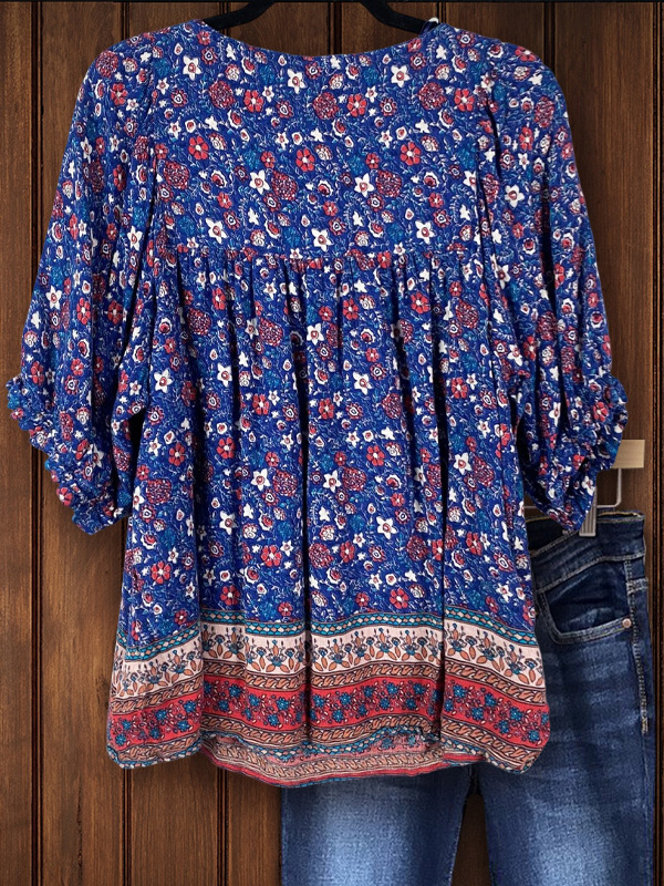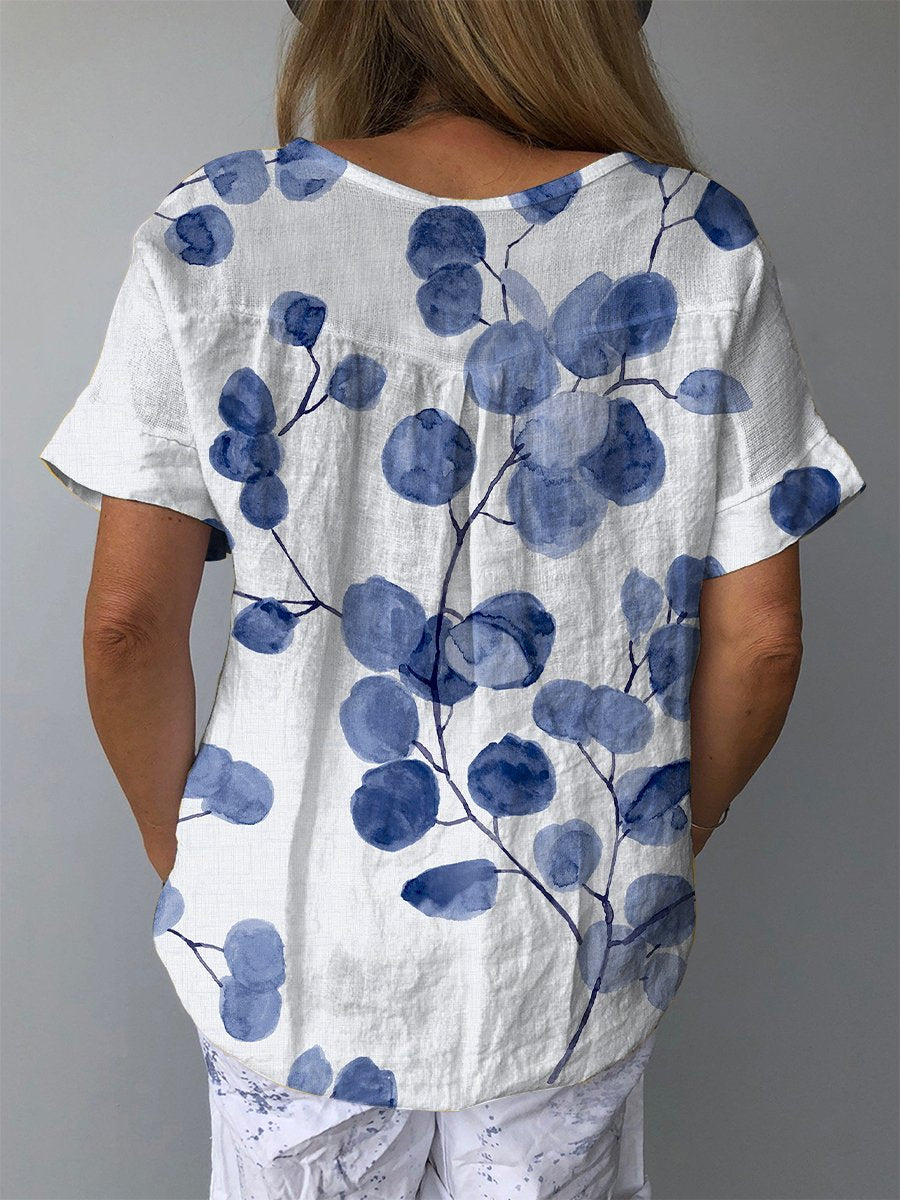 Women's Retro Botanical Floral Print Casual Cotton And Linen Shirt