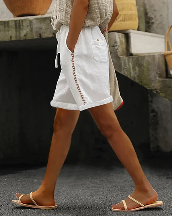 Cotton Linen Elastic Waist Loose Wide Leg Shorts