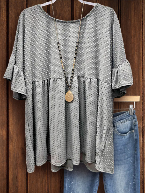 V-Neck Double-Layers Ruffle Sleeve Polka Dot Top