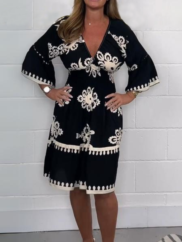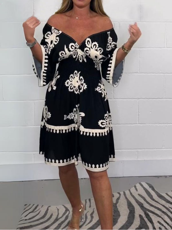 🏆New Style-49%OFF🔥Boho Deep V Half Sleeve Dress Loose Floral Skirt