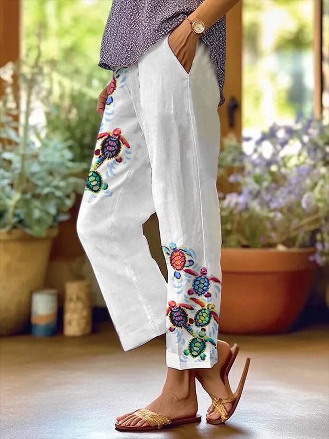 Women'S Solid Color Casual Cotton And Linen Trousers