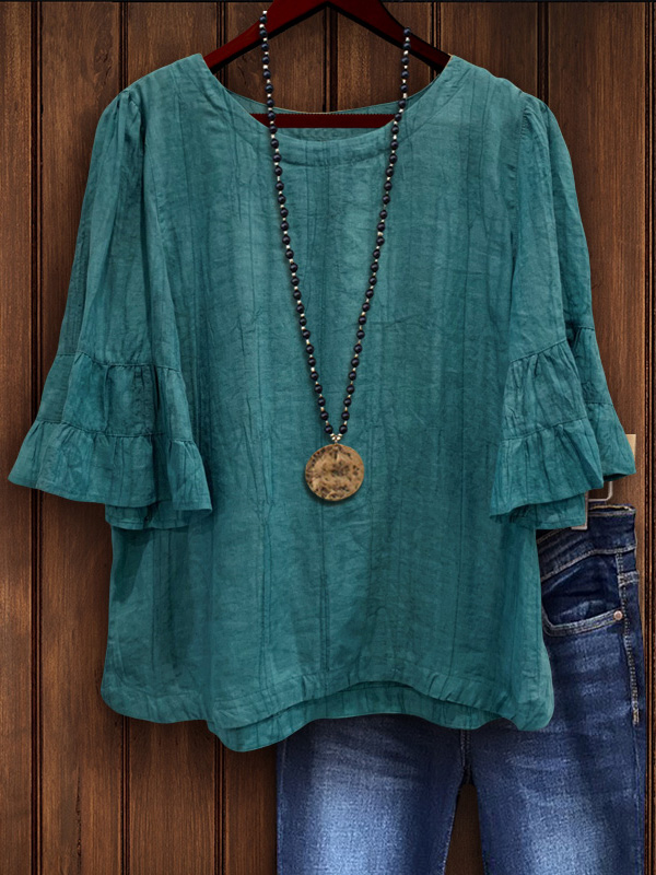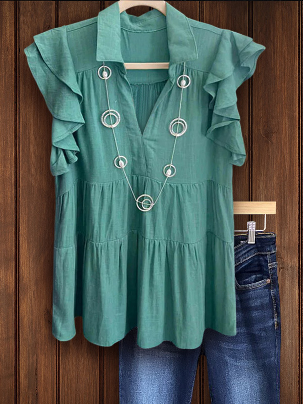 Double Layer Ruffle Sleeve Shirt Collar Top